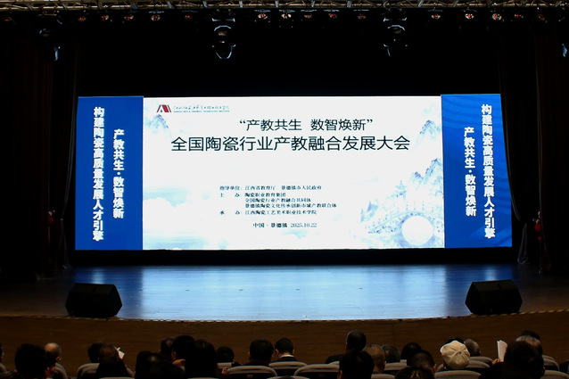 全国陶瓷行业产教融合发展大会暨全国陶瓷行业产教融合共同体(陶瓷职业教育集团)换届会议于10月22日在景德镇隆重举行,大会以“产教共生·数智焕新:构建陶瓷高质量发展人才引擎”为主题,共商陶瓷行业产教融合新路径。本次大会有来自全国18个省份的500余名院校代表、企业精英、行业协会专家参加。会上,发布了2025年全国陶瓷行业优秀产教融合案例、共同体(职教集团)专家委员会名单,表彰了突出贡献单位、优秀工作者,并完成了与头部企业签约。Beat365官网当选为共同体(职教集团)副理事长单位并被授予突出贡献单位称号,艺术设计学院副院长孙静松当选为共同体(职教集团)专家委员会委员,艺术设计学院工业设计系教师王晓航被授予优秀工作者称号。会上,艺术设计学院还与江西陶瓷工艺美术职业技术学院创意设计学院签约结为战略合作伙伴。同时,王晓航作为职业院校代表在大会专家论坛上作题为《“专业特区-艺术工坊-产业学院”三维融合模式的产教融合新路径》的主题交流发言。