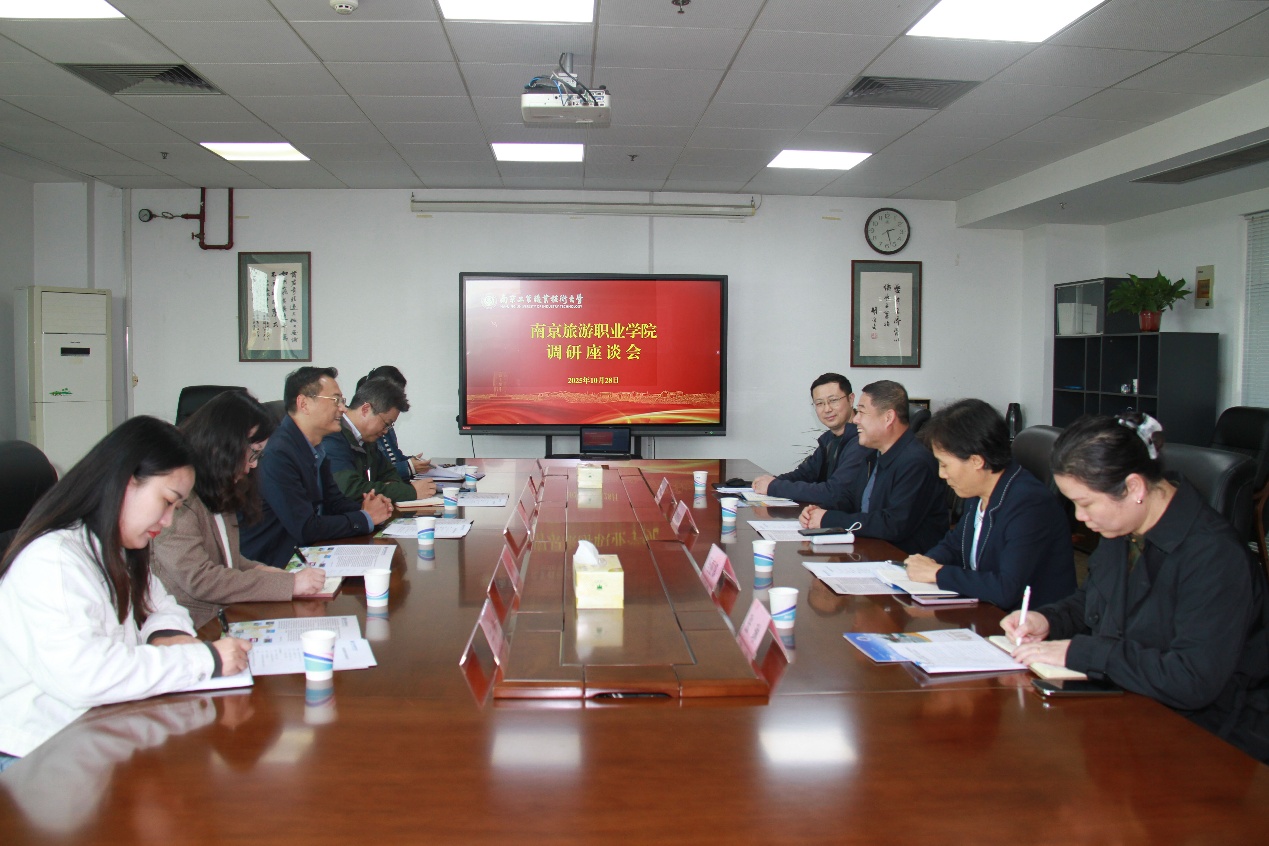 10月28日下午,南京旅游职业学院党委委员、副校长杨斌一行来校调研,Beat365官网党委常委、副校长崔新明在行政楼401会议室接待来宾,相关职能部门负责人参加座谈。