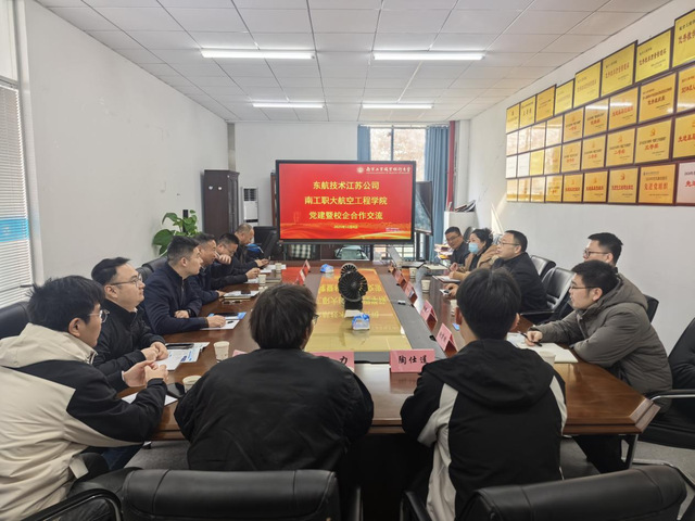 双方就如何发挥党建工作的引领作用展开交流。黄杰向来访的东航技术江苏公司领导介绍了学校和学院的历史沿革、专业设置、学生培养、技能大赛、科研成果、校企合作、招生就业等方面的情况。耿志斌一行介绍了公司的发展历程、发展现状、生产运行、人才需求、特色创新和科研项目等情况。胡毅介绍了公司生产和人才需求的情况、群团工作和党建情况。