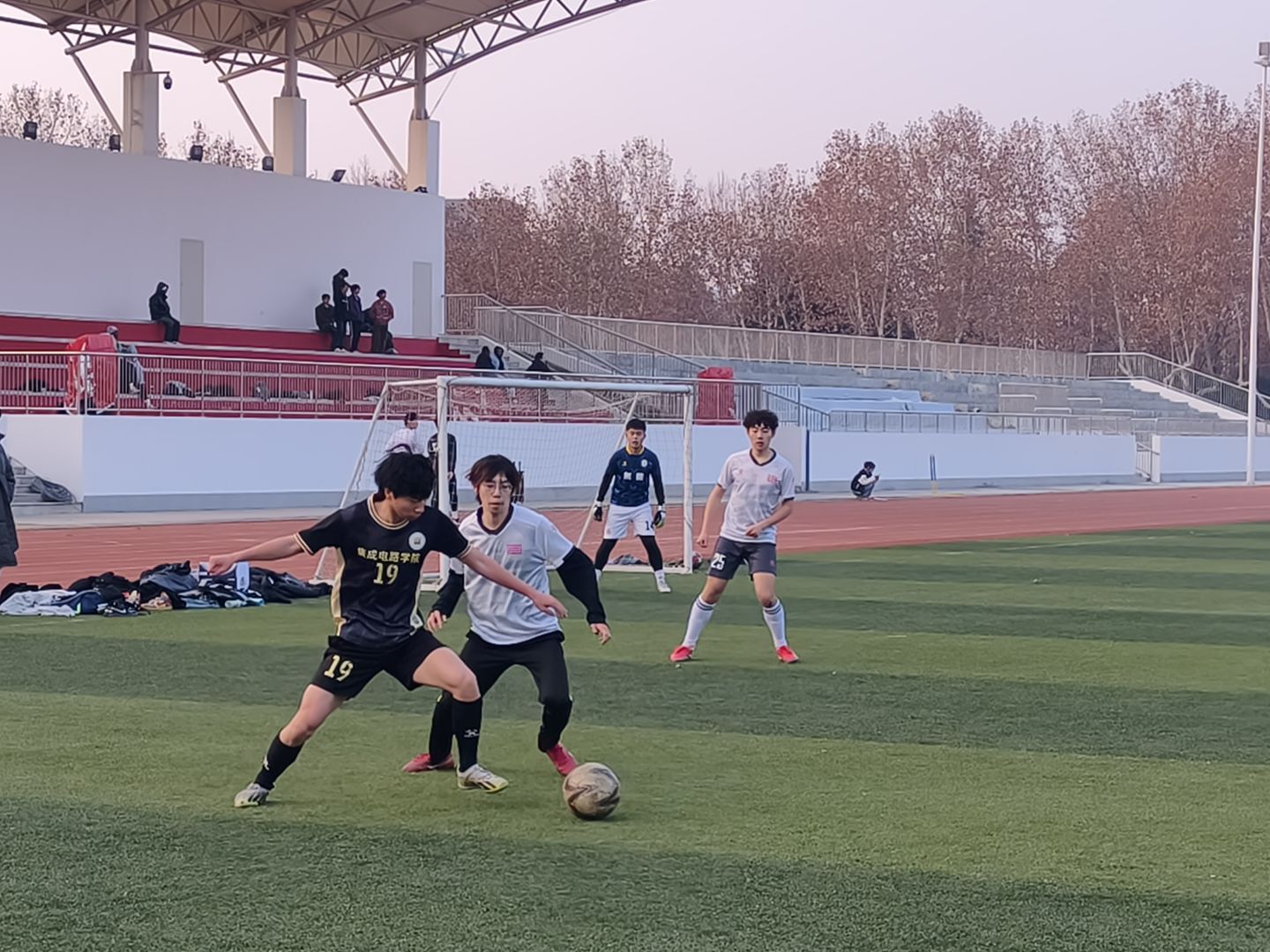 12月17日,Beat365官网2025年“新生杯”足球比赛在学校体育场顺利收官。校团委副书记蔡骁,国际教育学院直属党支部副书记、副院长张莉,科技园管理有限公司副总经理张威,体育部副部长金超及教师足球队队长张巍到场观战并为球员们颁奖。其中,张威、金超和张巍参与比赛并与同学们同场竞技。