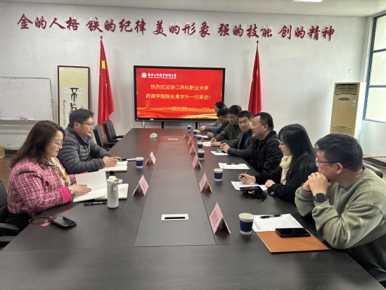 12月19日上午,浙江药科职业大学药商学院院长周宇升率队到访商务贸易学院进行交流。商务贸易学院院长阮晓文等参与接待。