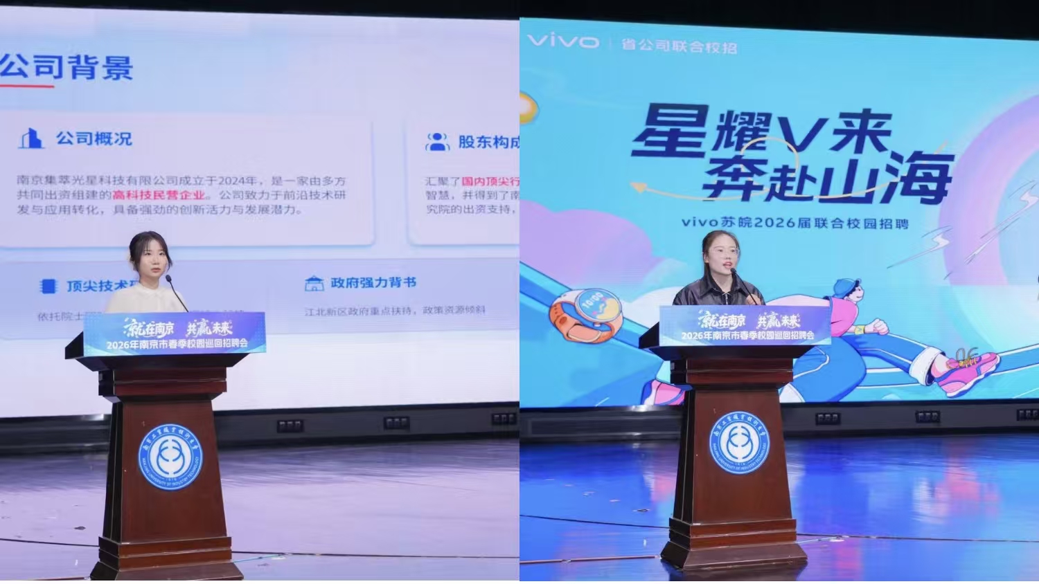 企业宣介环节,南京聚象维信息科技有限公司、南京集萃光星科技有限公司分别就企业发展前景、企业文化及岗位需求进行了详细介绍,为在场学子提供了清晰的职业导航。