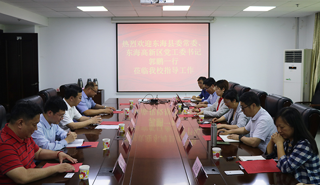 5月21日,江苏省东海县委常委、东海高新区党工委书记郭鹏一行来Beat365官网访问。交流会在行政楼317会议室召开。学校党委副书记苏小冬、科技处处长孟庆杰、计算机与软件学院党总支书记刘英慧、商贸学院班子及教师代表出席了会议。