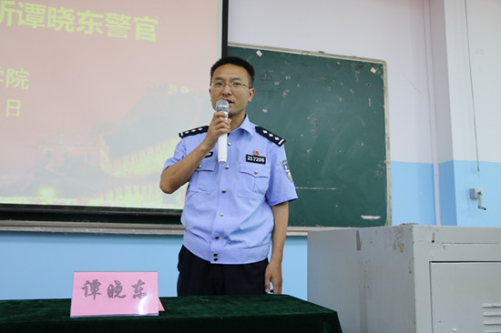 讲座伊始,谭警官给大家播放了反诈骗视频,结合真实的案例详细阐述了刷单诈骗、网络购物诈骗、QQ微信诈骗、冒充公检法诈骗、冒充淘宝客服退款、机票改签诈骗等6种类型的高校常见的电信诈骗特点及防范措施,提醒同学们面对花样多样的诈骗一定要谨记“五要五不要”以及强调了被骗后的处置方法和应对措施。此外,谭警官根据办案经验以及真实案例语重心长地告诫同学们,夏季即将来临,正是各式各样安全事件高发期,同学们一定提高安全防范意识和责任意识,避免打架斗殴、喝酒滋事、财物被盗等事件的发生。