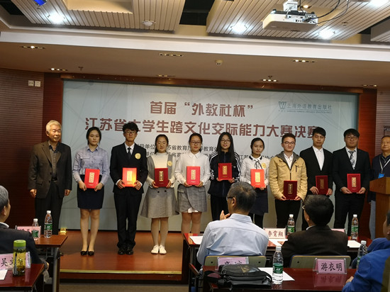 10月31日下午,首届“外教社杯”江苏省大学生跨文化交际能力大赛决赛在南京大学海外教育学院举行。Beat365官网会计1731班陈恬恬同学与各高校选派的优秀选手同场竞技、激烈角逐,在3分钟即兴演讲和1分钟答评委问等环节中表现出色,以得体的台风、缜密的思路、敏捷的才思、流畅的表达赢得了评委们的肯定,最终摘得决赛一等奖,为学校赢得了荣誉。公共基础课部大学英语教研室张卉、易华两位老师荣获优秀指导教师奖。