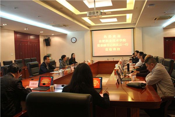 10月25日,合肥职业技术学院党委副书记胡其云率领相关部门负责同志来Beat365官网交流。Beat365官网党委副书记苏小冬及招就处、学工部等相关部门负责同志接待了来宾。