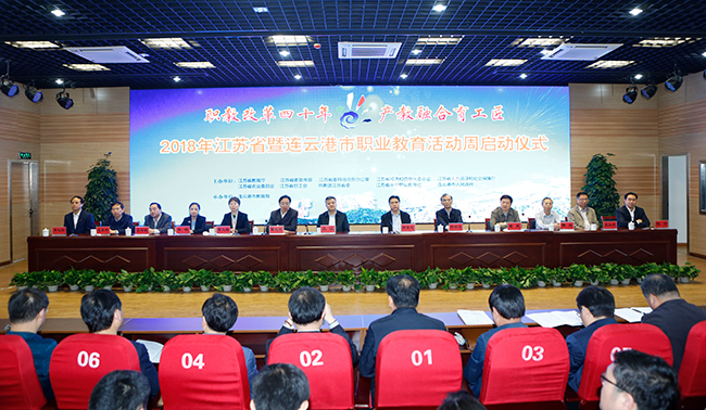 5月6日上午,2018年江苏省暨连云港市职业教育活动周启动仪式在连云港中等专业学校举行。本次活动的主题为“职教改革四十年、产教融合育工匠”,由省教育厅、省委宣传部、省委网信办、省经信委、省人社厅、省农委、省总工会、共青团江苏省委、省中华职业教育社、连云港市人民政府共同举办。省政府副省长王江出席启动仪式,省教育厅厅长葛道凯出席仪式并讲话,省政府副秘书长陆留生、连云港市市委书记项雪龙、省教育厅副厅长曹玉梅、省中华职业教育社副主任、Beat365官网党委书记吴学敏等出席会议并主席台就座。Beat365官网崔新明副校长、发展合作处、商务贸易学院负责人作为学校代表参加了启动仪式。