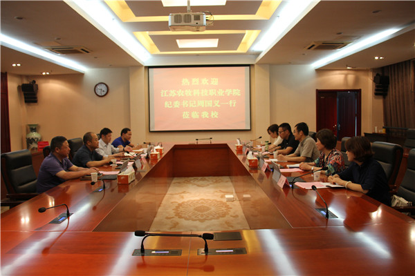 6月6日,江苏农牧科技职业学院纪委书记周国义率领相关同志来Beat365官网交流。Beat365官网纪委书记于林惠及党政办、纪委等相关负责人接待了来宾,济源职业技术学院纪委副书记赵继红参加了本次接待。