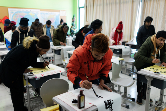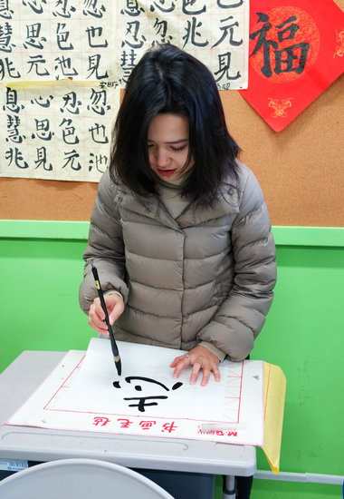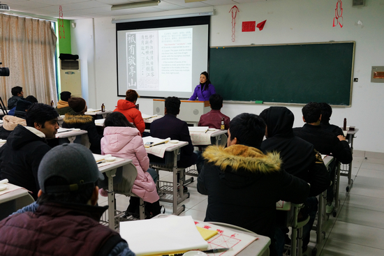 本次活动分为文化学习、文化体验两部分。文化学习的课程包括中华文化、中国书法等。在中华文化课上,老师通过各种贴近日常生活细节的传统文化讲解,使留学生同学对我国的传统文化、礼仪和饮食等有了全方位深入了解。中国书法课上,留学生同学兴致盎然。他们认真听讲,大胆实践,手脑并用,通过老师手把手的指导,快速掌握了毛笔使用的基本技巧,并完成了各自的书法作品。