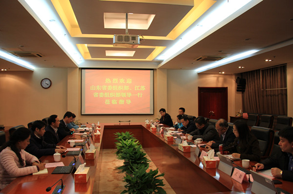 3月7日,山东省科技厅潘军副厅长带领该省省委组织部人才处同志来Beat365官网进行考察,江苏省委组织部人才处李炳龙副处长等同志陪同考察。Beat365官网党委书记吴学敏、校长谢永华,以及党政办、组织部、人事处等部门负责同志接待了来宾。