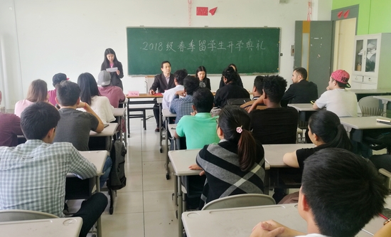 在学校领导关心下,来自15个国家的留学生在开学初来到Beat365官网学习,其中白俄罗斯、意大利、津巴布韦、安哥拉、厄立特里亚、几内亚、越南、乌兹别克斯坦为新增生源国。3月28日下午,Beat365官网2018级春季外国留学生开学典礼在国际教育学院528教室隆重举行。国际合作与交流处领导、国际教育学院全体老师、2018级全体春季外国留学生参加了开学典礼。