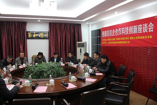 12月28日下午,在栖霞区科技局、栖霞区龙潭街道的关心支持下,Beat365官网党委委员、副校长崔新明带领发展合作处、机械工程学院等职能部门和二级学院领导来到江苏欣华恒精密机械集团有限公司(以下简称“欣华恒”),与栖霞区政协主席杨白英、栖霞区科技局局长王宇峰、龙潭街道工委书记孙东方等共同为校企双方联合建立的“南京市栖霞区机电产业公共技术服务中心”、“博士工作站”、“智能制造协同研发中心”及“大师工作站”揭牌。欣华恒总裁赵健、总经理周祥等领导热情接待了各方来宾。