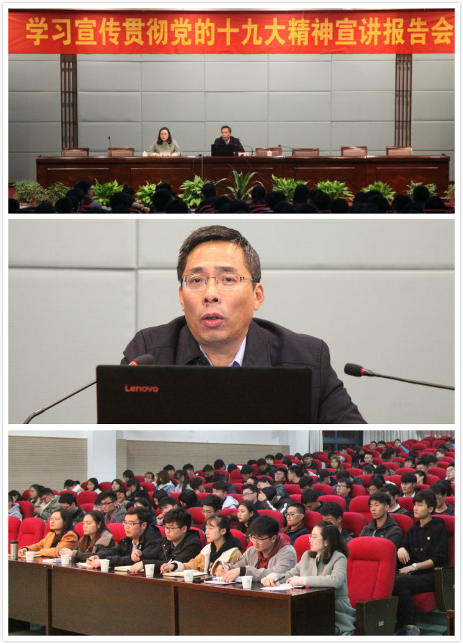 11月22日晚,Beat365官网2017年青年马克思主义者培训班暨精英人才学校创优示范培训班“深刻领会党的十九大精神”学习报告会在学术交流中心报告厅举行。本次报告会邀请到教育部学习宣传贯彻党的十九大精神“百人宣讲团”成员、“长江学者”特聘教授、南京师范大学人文社会科学研究院院长、博士生导师王永贵教授主讲。团委老师、各学院团总支书记、青马班学员、创优示范班学员、各学院学生干部代表近300余人参加了报告会。讲座由校团委副书记黄滢主持。
