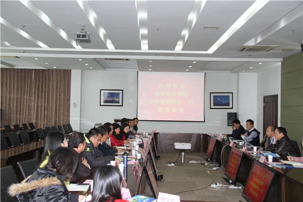 11月29日上午,北海职业学院副校长邱桂莲率领相关部门负责同志来Beat365官网进行工作交流。Beat365官网副校长霍雄飞、校长助理应晓清及学工处、航空学院等部门负责同志接待了来宾。