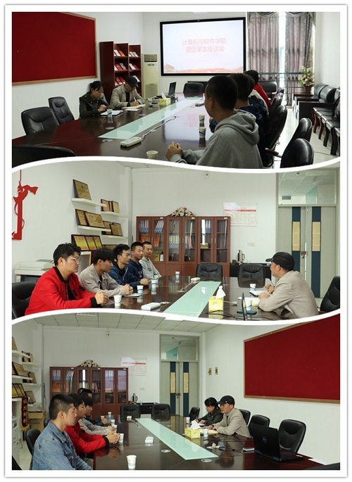 为了解退伍新生学习、生活和思想状况,帮助退伍新生尽快适应大学生活和解决学习、生活中的实际困难,10月29日中午,计算机与软件学院召开了退伍学生座谈会。党总支副书记邹烈刚,辅导员和大一退伍学生参加了座谈会。
