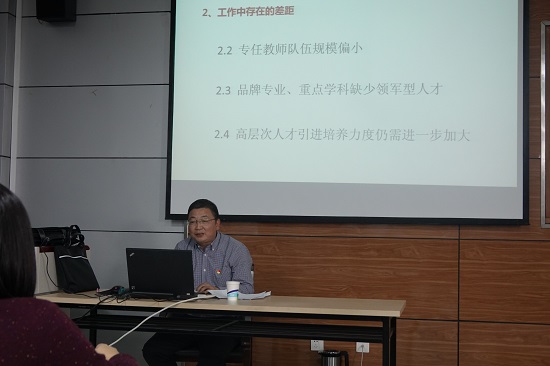 最后,他强调,站在新百年的崭新起点上,处于学校提档升级的关键时期,一支师德高尚、业务精湛、结构合理、充满活力的高素质专业化创新型教师队伍正在形成。我们要为人民、为中国特色社会主义、为改革开放和社会主义现代化建设而教书育人,要始终把立德树人作为根本任务,培养德智体美劳全面发展的社会主义建设者和接班人。