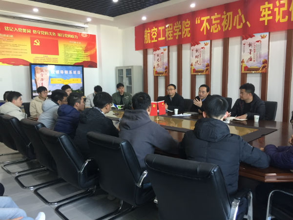 为进一步加强和改进大学生思想政治工作,推动领导干部落实立德树人根本任务,切实履行办学治校、育人育才、维护稳定的政治责任和领导责任,增强领导干部服务基层和广大师生的宗旨意识,促进学校各项事业科学发展,根据《中共教育部党组关于加强和改进高校领导干部深入基层联系学生工作的通知》,12月10日上午,学校党委书记吴学敏走进联系的飞机1811班, 在求真楼512会议室与班级同学亲切交谈,共话成长。航空工程学院党总支副书记、院长黄杰、党总支副书记、副院长孙军伟、飞机1811班班主任许振腾、飞机1811班级全体学生参加了交流活动。