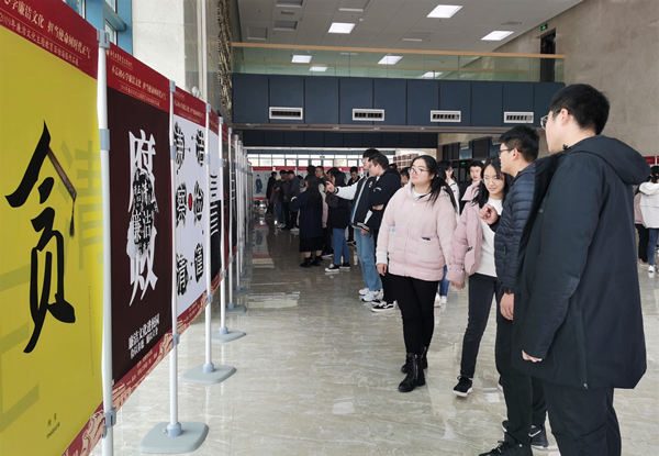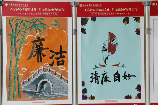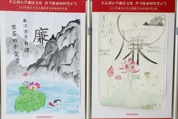 为贯彻落实新形势下全面从严治党的有关要求,在全校营造浓厚的崇德尚廉文化氛围,维护风清气正的校园政治生态,根据学校党委对党风廉政建设工作的统一部署,结合“不忘初心、牢记使命”主题教育,校纪委办公室、学生工作部(处)、团委开展了“不忘初心学廉洁文化,担当使命树时代正气”2019年廉洁文化系列主题教育活动。校党委委员、纪委书记于林惠,党委委员、副校长霍雄飞与师生共同观看作品展。
