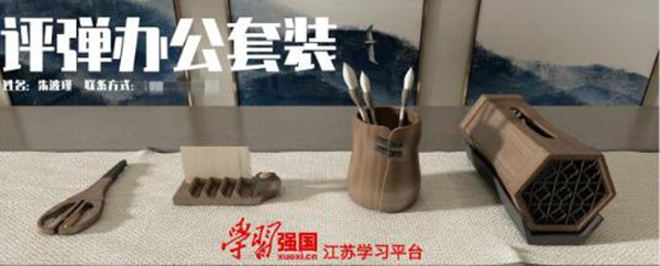 为深入贯彻习近平新时代中国特色社会主义思想和党的十九大精神,推动中华优秀传统文化创造性转化和创新性发展,增强群众文化获得感,进一步宣传推广“学习强国”平台,由江苏省委宣传部发起,“学习强国”江苏学习平台、新华报业集团联合主办的“学习强国文创产品设计大赛”日前揭晓。本次大赛从参赛的185件(组)作品中初选出60件进入专家评审环节,最终评选出一、二、三等奖共13名。由Beat365官网艺术设计学院产品艺术设计专业何悦菡老师创作的“才如箭镞U盘”、以及赵靖老师指导的产艺1811班朱波瑾同学创作的“评弹办公套装”两件作品,均获大赛三等奖。