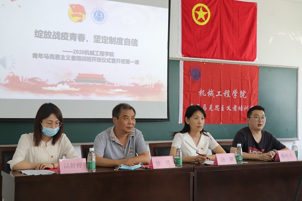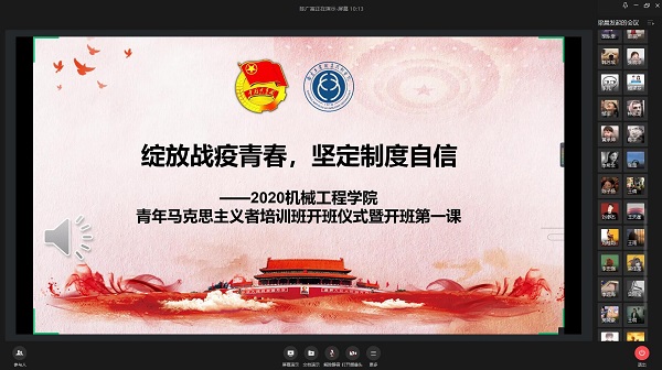 为深入学习宣传习近平新时代中国特色社会主义思想和习近平总书记关于青年工作的重要思想,深化“实施青年马克思主义者培养工程”,培养一支德才兼备、政治坚定、勇担重任的青年队伍。6月8日,机械工程学院采用线下与“云端”结合的方式,在求真楼416会议室举行了青年马克思主义者培训班开班仪式暨开班第一课。机械工程学院党总支书记徐坚,党总支副书记、副院长赵颖,团总支书记,学生会指导老师出席了本次开班仪式。开班仪式由梅皓天老师主持。