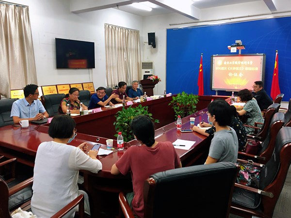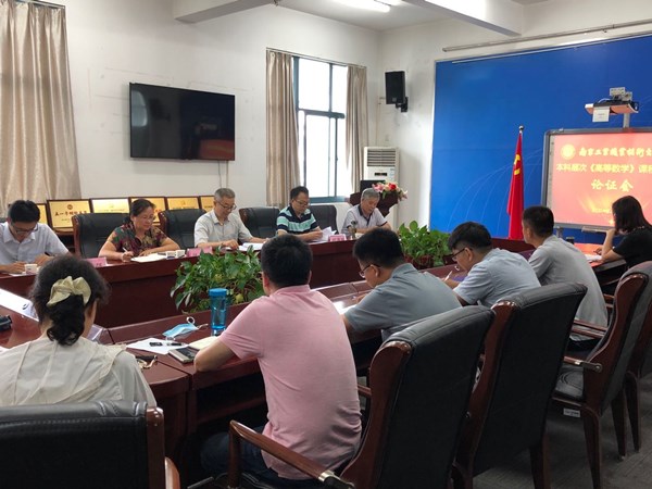 7月30日上午首先召开《大学英语》课程标准论证会,南京工业大学外国语言文学学院副院长、中国英汉语比较研究会外语教育技术专业委员会理事胡元江教授和金陵科技学院外国语学院副院长张志刚教授到会指导。在教研室主任张秀芹汇报、解读新大纲初稿后,两位专家首先就我国大学英语教学的总体状况、指导性政策、发展趋势以及本科职业教育与普通本科大学英语教学的区别等内容进行了说明,然后对Beat365官网《大学英语》本科课程新标准进行了细致、认真的研究与指导,提出了宝贵的意见与建议。