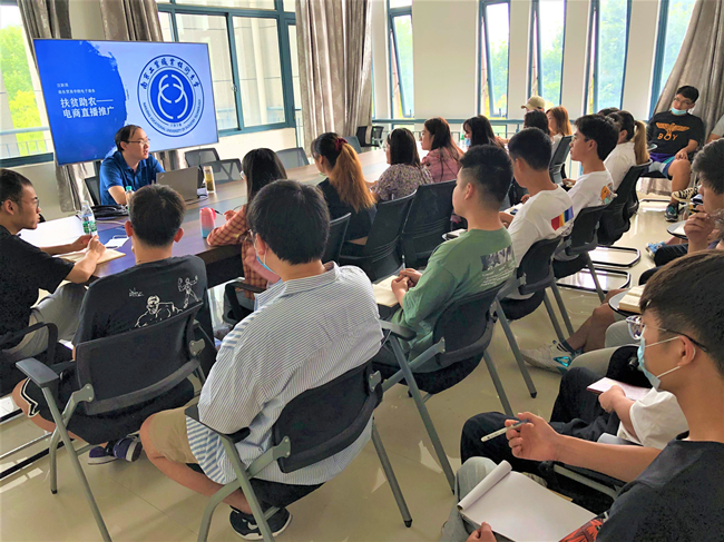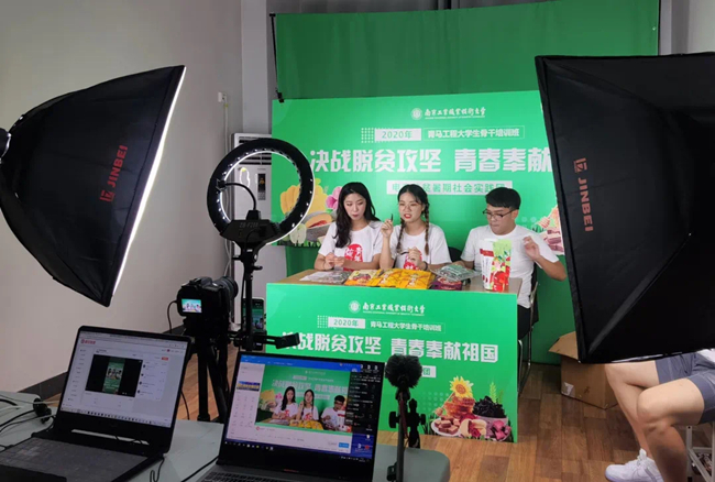 为了确保直播活动顺利进行,自7月初启动仪式开始,学校多次开展了电商直播技能培训会。各学院成员分工明确,精准联系52个贫困县,对接当地农户并收集货源。此外,成员们亲自品尝所收到的农副产品,对所收集到的货源层层把关,并对其口感、功效等方面做了深入了解。通过反复的技能培训、小组讨论与求精,以及试播,最后初步掌握了直播带货技能与技巧。