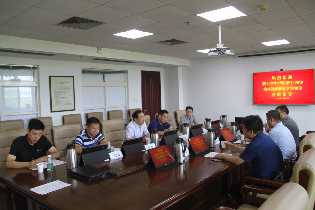 8月24日上午,陕西省中华职教社副主任兼秘书长王彦平,榆林能源科技职业学院党委书记任忠宽,陕西省中华职业教育社社务委员、陕西天益教育科技有限公司总经理孙书阳一行在省委统战部党派处副处长、江苏省中华职业教育社副秘书长丁哲军,江苏省中华职业教育社干部袁旭的陪同下来Beat365官网考察交流。Beat365官网党委书记、江苏省中华职业教育社副主任吴学敏出席座谈会,党政办公室、发展规划办公室、高等职业教育研究所、黄炎培职业教育思想研究院秘书处等部门负责同志陪同考察。