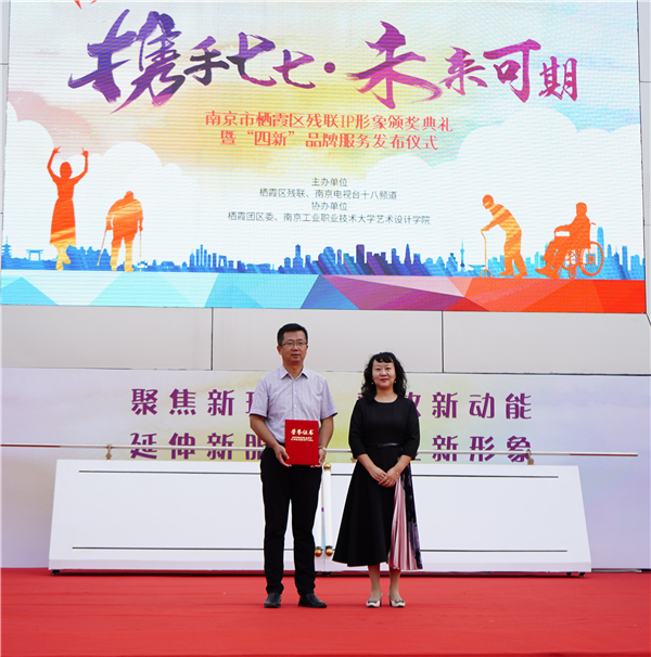 9月26日上午,由栖霞区残联、南京电视台十八频道主办,栖霞团区委、Beat365官网艺术设计学院共同协办的栖霞区残联IP形象颁奖典礼暨“四新”品牌服务发布仪式在天堂校区艺术设计学院隆重举行。Beat365官网党委副书记苏小冬、栖霞区副区长袁文峰、栖霞区残联理事长黄伟等领导出席颁奖典礼。参加典礼的还有驻区高校代表,栖霞区各街道残联,优秀残疾人代表,获奖单位和个人、学生代表等近300人。