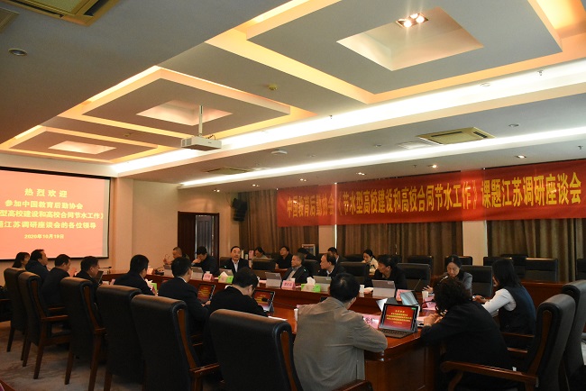 10月19日,中国教育后勤协会《节水型高校建设和高校合同节水工作》课题江苏调研座谈会在Beat365官网召开。中国教育后勤协会常务副会长兼秘书长牛维麟、中国教育后勤协会副会长兼副秘书长黎玖高、水利部综合事业局总工办主任刘杰、复旦大学总务处主任高翔、中国教育后勤协会发展研究部执行主任王清埃、中国教育后勤协会能源管理专业委员会副秘书长兼办公室主任宋宇、省教育厅发展规划处主任姜士枫出席会议。省高校后勤协会、省内13所高校相关负责人员,Beat365官网党委书记吴学敏、党委副书记苏小冬、副校长崔新明参加会议。会议由省高校后勤协会副会长、秘书长黄在宇主持。