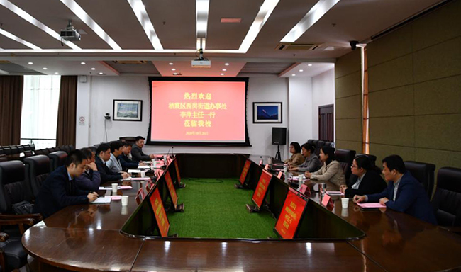 10月26日,栖霞区西岗街道人大工委主任李萍和街道领导石晓红、徐玉静、仇晓源、何道锦等一行5人来校调研。Beat365官网党委副书记苏小冬和党政办公室、发展规划办公室、党委组织部、党委统战部、工会、离退休工作处、机械工程学院相关同志接待了来宾。