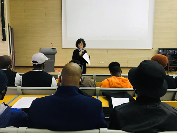 紧接着,来华留学生们聆听了南京外国语学校教学处副主任、纪念馆紫金草国际和平学校讲师尚媛媛以《QuestionOf Morality: John Rabe》为题,讲述了国际友人约翰·拉贝1937年留守危难中的南京城,保护大量难民的大爱故事。