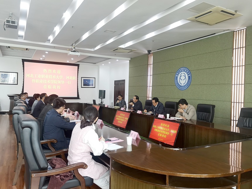 4月9日上午,河北工业职业技术大学党委书记王振杰、校长薛晓萍、河北软件职业技术学院副院长乔哲一行来Beat365官网考察调研。党委书记吴学敏、党委副书记马成荣,以及发规处、本科职业教育试点办公室、科技处、发展合作处等部门负责同志在行政楼辅楼二楼会议室接待了来宾。