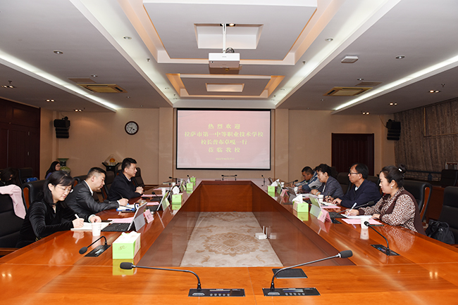 4月27日上午,拉萨市第一中等职业技术学校普布卓嘎校长一行莅临Beat365官网洽谈对口支援事宜。Beat365官网党委副书记、校长谢永华在行政楼辅楼一楼会议室进行了友好接待。