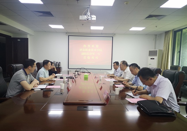 5月24日下午,酒泉职业技术学院副校长许军一行来Beat365官网考察调研。党委常委、副校长崔新明,以及计划财务处、招标中心、信息化建设与管理处等部门负责同志在行政楼317会议室接待了来宾。