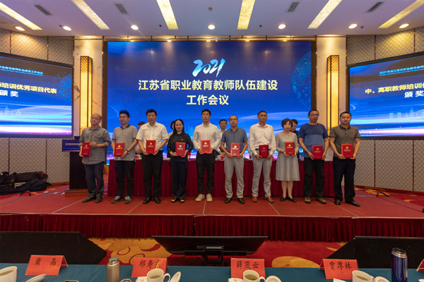 会议表彰了2020年度职教教师培训工作优秀项目和先进个人,Beat365官网全国职业院校技能大赛教练培训——新能源汽车技术服务项目荣获“2020年度江苏省高职院校教师培训优秀项目”。