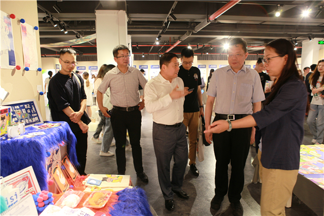 开幕式后,校内外嘉宾一起参观了作品展。此次展出的作品,充分体现了“用艺术彰显文化、用设计展现创意”的理念,展示了南工艺术人的文化特质和艺术风貌,体现了艺术学子们对于设计的深刻理解和创新精神,反映了同学们对专业知识和实践能力的高度掌握。同学们那些富含传统与现代文化元素、富有创意的设计佳作得到了领导和嘉宾们的高度评价。