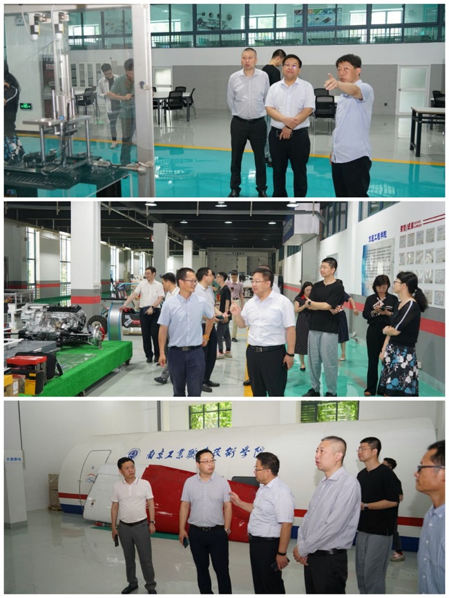 袁文峰一行首先参观了Beat365官网黄炎培职业教育思想展览馆,听取了关于职业教育从初创的艰辛到如今的飞速发展的历史介绍。随后参观了国家双创示范基地和产教融合基地,重点考察了智能制造综合实训中心、比亚迪新能源汽车实训中心、航空机电综合实训中心,肯定了Beat365官网在产教融合校企合作方面取得的成绩。