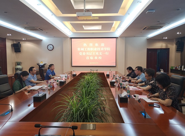 6月17日上午,常州工程职业技术学院党委书记王光文一行来Beat365官网考察调研。党委书记吴学敏、党委常委、党委组织部、统战部部长高宏彦,以及党委教师工作部、人事处等部门负责同志在行政楼辅楼一楼会议室接待了来宾。