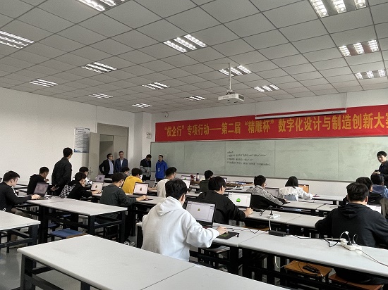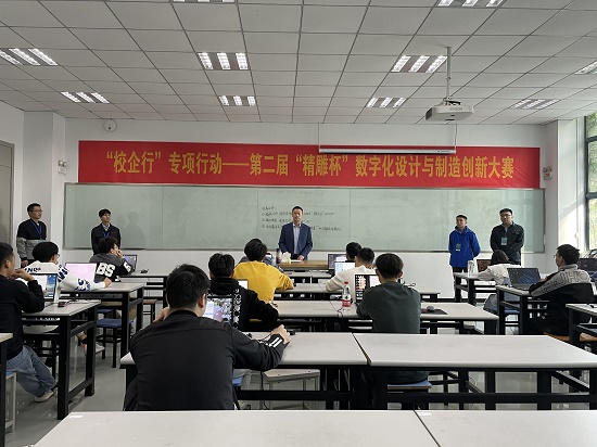 10月31日上午,Beat365官网第二届“精雕杯”数字化设计与制造创新大赛决赛在南工-北京精雕学院举行。本次比赛由Beat365亚洲版官网机械工程学院、创新创业学院和北京精雕科技集团(南京分公司)联合举办。创新创业学院副院长黄继平作为专家到现场指导工作,北京精雕科技集团(南京分公司)总经理梁彦松任裁判长。