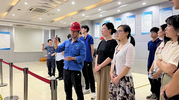 电气工程学院暑期社会实践团师生到句容绿色动力再生能源有限公司进行参观学习。该公司致力于将垃圾变废为宝,通过科技手段实现垃圾的减量化、资源化、无害化处理。在工作人员的带领下,暑期社会实践团师生通过沙盘模拟讲解、实操车间参观等方式,对垃圾分类、加工处理、分解反应等方面有了直观和深入的学习体会。参观后,师生们与工作人员进行面对面交流讨论,座谈会上,句容绿色动力再生能源有限公司总经理黄海鹰向参观人员介绍公司的发展理念、运营模式和未来规划,工作人员耐心听取同学们的参观感受并就同学们提出的问题一一作答。