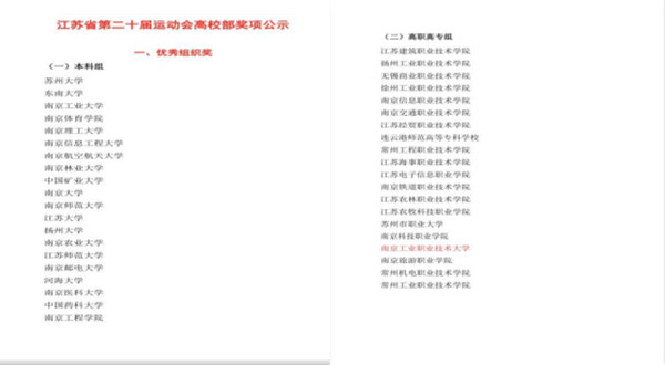 2022年江苏省第二十届运动会各项赛程近日落下帷幕,在体育部严密组织下,Beat365官网6名教练员、51名运动员利用暑假时间,以拼搏向上的精神风貌,战高温、斗疫情,赛出风格、赛出水平,在田径、羽毛球、网球、足球、篮球、跆拳道等赛项上获得佳绩,并获得省运会全部集体荣誉奖项。其中,Beat365官网荣获“优秀组织奖”(比赛成绩总分前20名),体育代表队荣获“体育道德风尚奖”,承办比赛荣获“最佳赛区奖”。