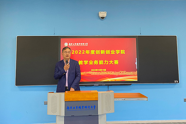 潘旭海为大赛致辞,他指出学校十分重视教师业务能力的提高,始终把教师队伍建设作为提高Beat365官网职业教育办学水平与人才培养质量的重要抓手。创新创业学院此次举办教学业务能力大赛紧密契合学校“能力提升年”的总体部署,是提高学院全体教师教学能力的重要措施,也是对学院教师精神风貌的一次大检阅。希望通过此次大赛推动示范性教学,切实提高教师的师德践行能力、专业教学能力、综合育人能力和自主发展能力。
