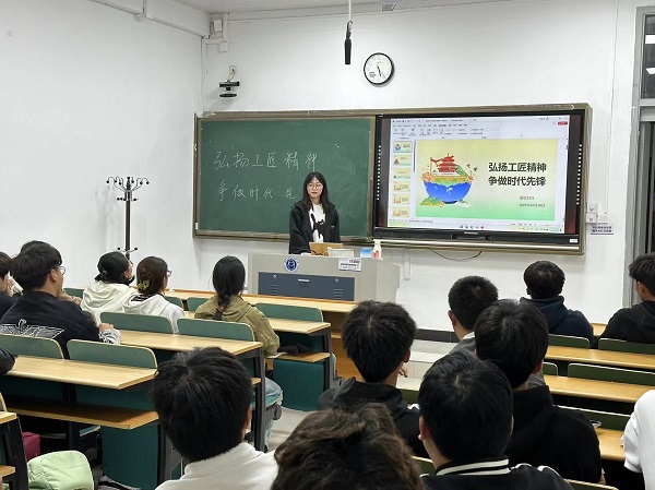 宣讲活动上,宣讲团成员以“弘扬工匠精神,争做时代先锋”为主题,向同学们讲述了特级技师高凤林心怀梦想、焊接飞天神箭和高级钣金工王伟精益求精挺举中国大飞机翱翔蓝天的劳模故事。在讲故事的过程中,总结工匠精神的内涵和意义,激发同学们的劳动热情和创新能力;鼓励同学们在学习中认真刻苦,积极向上,努力成为有知识、有理想、会创新的新一代接班人。