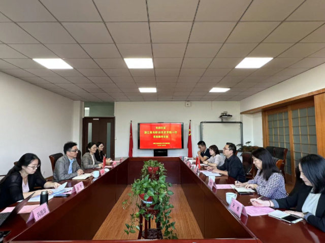 11月1日,浙江机电职业技术学院公共基础教学部副主任房利一行五人来Beat365官网,就公共基础课程的教学改革情况进行交流调研。Beat365官网公共基础课部主任金跃强、副主任江颖及相关教研室负责人在乐业楼426会议室接待了来宾。