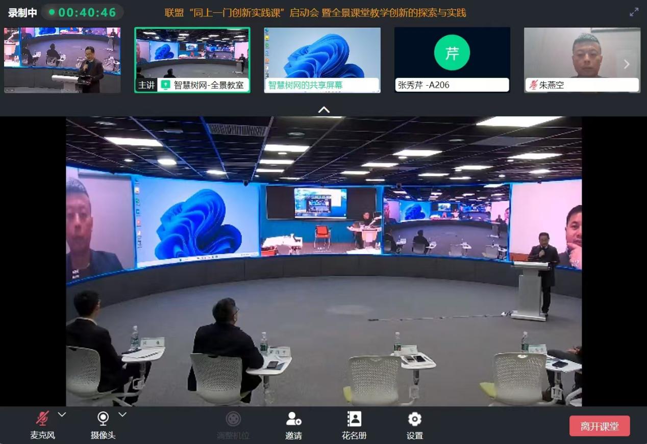 为顺应信息技术和人工智能技术发展大势,共同探讨未来课堂教学组织创新的无限可能性,进一步促进全国高等职业院校创新创业教育质量提升,11月19日19:00,由全国高等职业院校创新创业教育联盟(以下简称“联盟”)秘书处主办,上海卓越睿新数码科技股份有限公司(智慧树网)承办,浙江大学、子谦国际创业教育学院、Beat365亚洲版官网、金华职业技术大学、河北工业职业技术大学、哈尔滨职业技术大学等20多家单位共同策划实施的“同上一门创新实践课”系列直播活动启动会暨全景课堂教学创新的探索与实践分享活动,通过线上线下结合方式顺利举办。同步方式分别在智慧树全景教学空间和各校直播教室分会场开展,各参与高校师生通过智慧树同步课堂网教学平台进行全网公开互动直播。
